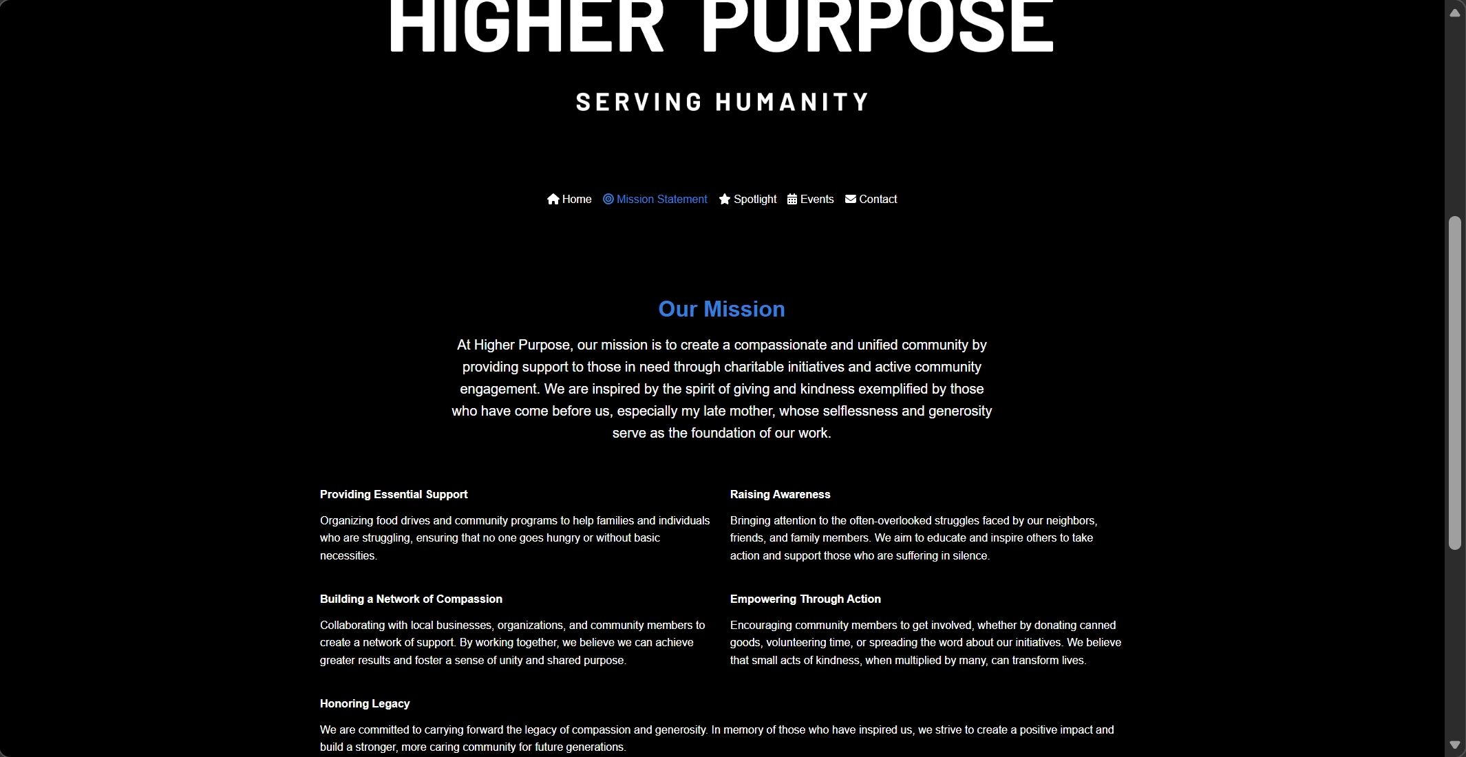 Higher Purpose started as a group of friends wanting to give back to their community, but had no digital presence to organize drives, track donations, or spotlight the local businesses stepping up alongside them.